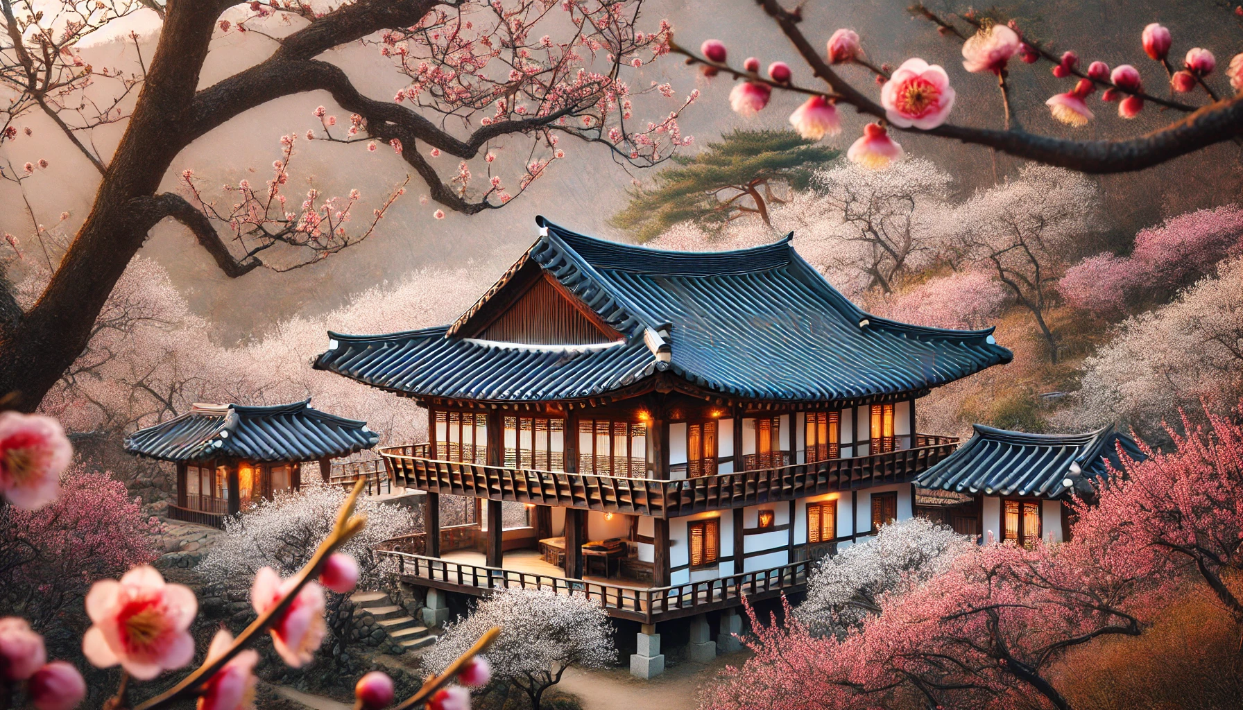 2️⃣ 홍쌍리 매화농원 – 100년 역사의 매화나무와 전통 한옥 배경
