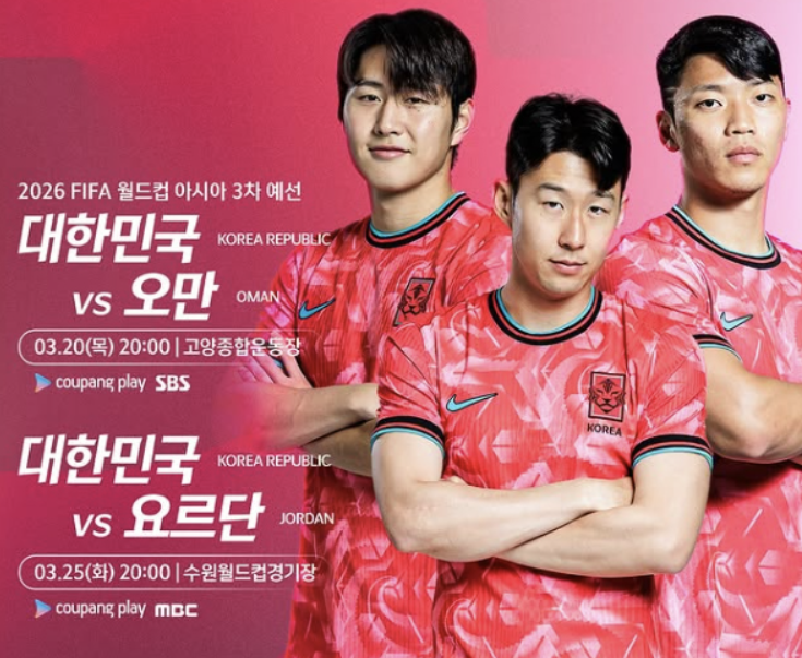 - 3월 25일 (월) 요르단전 (수원월드컵경기장) 🏟️ MBC 생중계