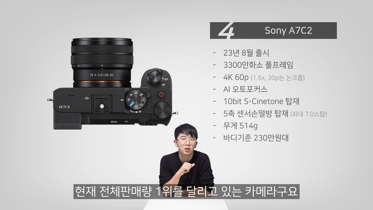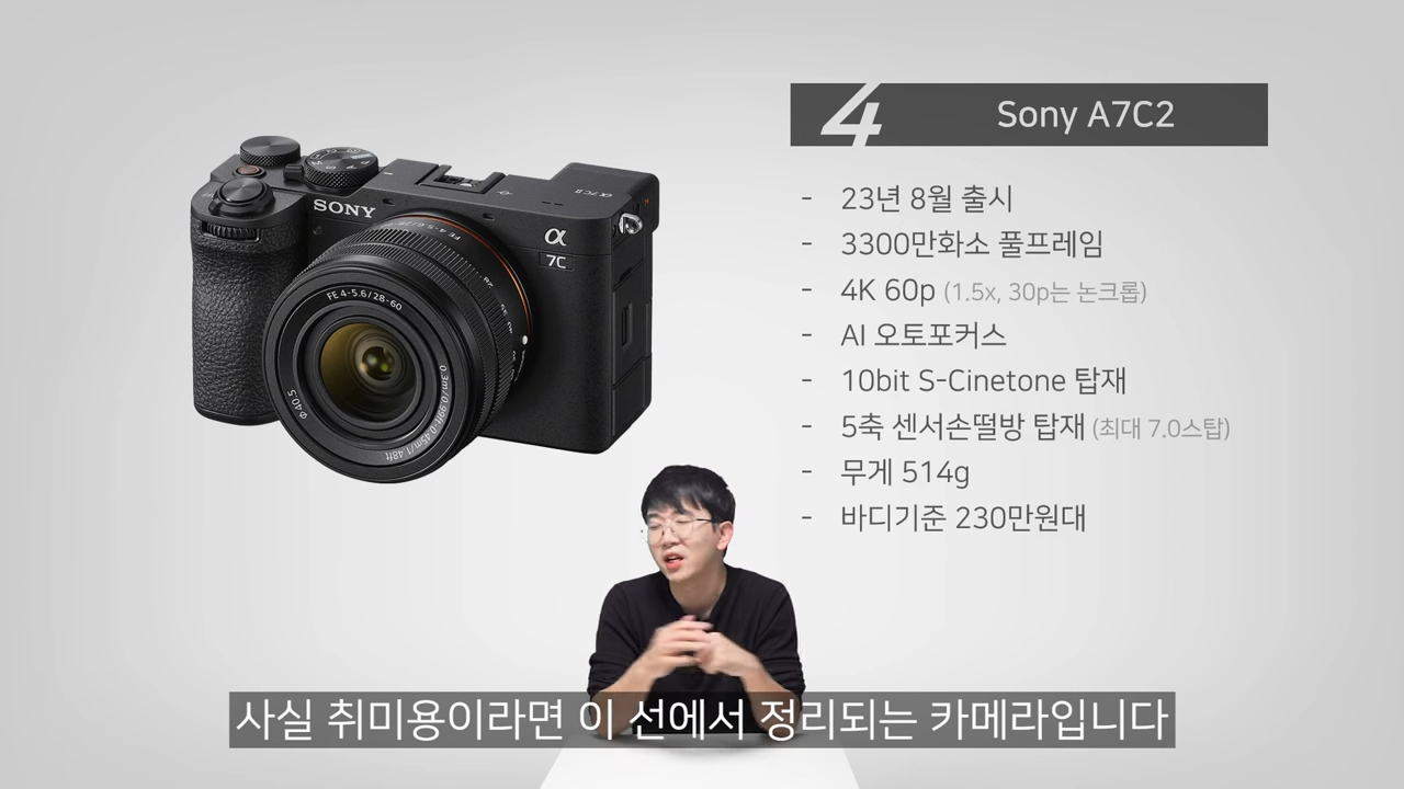 - 4K 60fps, 10bit, S-Cinetone 지원 → 준프로급 영상 가능